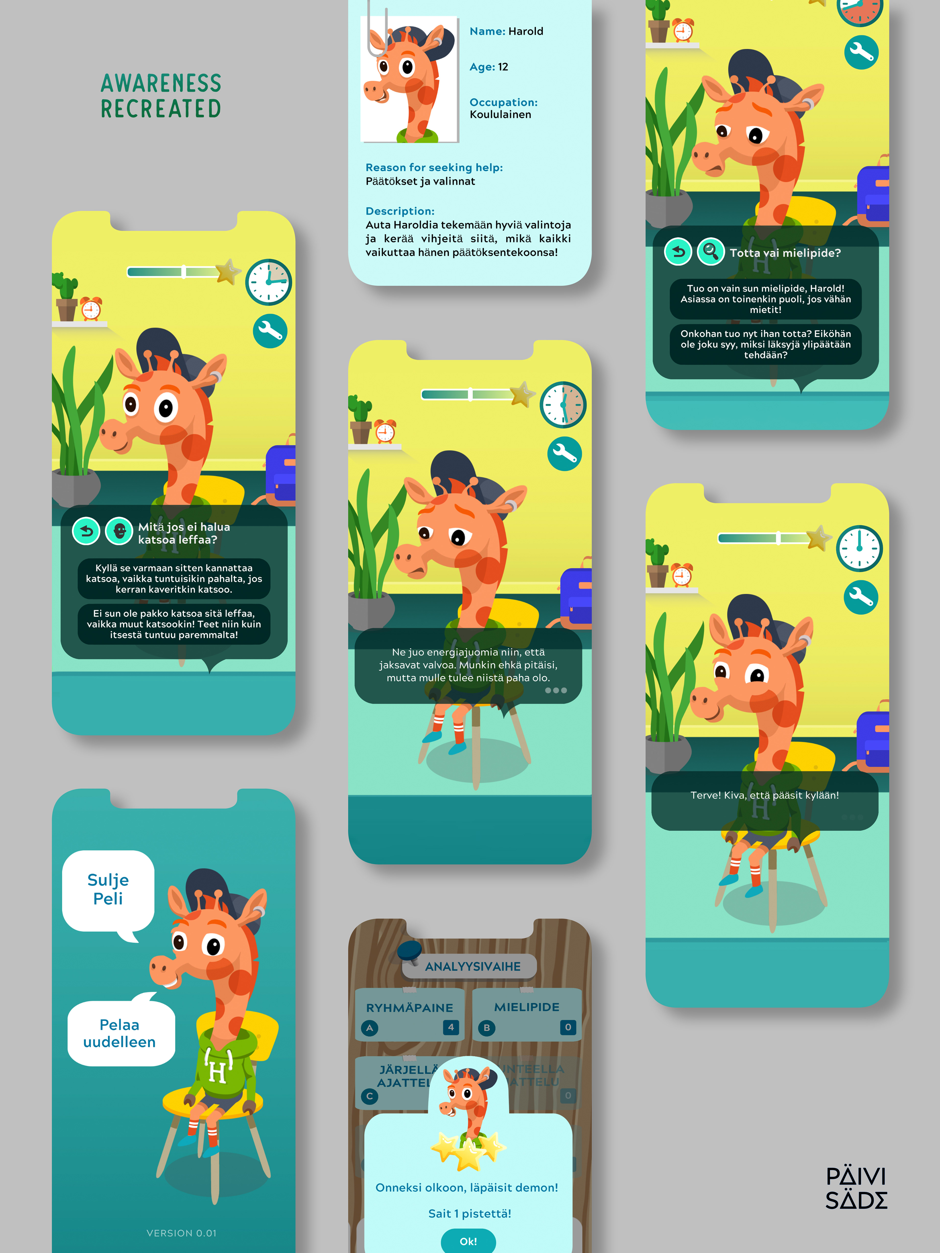 Character design, backgrounds and UI art for an educational game for kids.